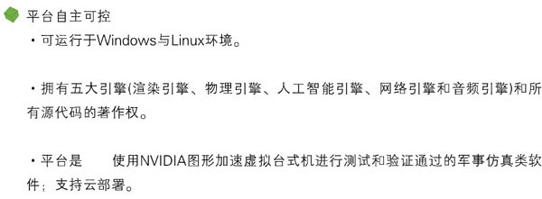 虚拟军事仿真平台(Virtual Military Simulation)是通过吸收专业仿真引擎技术,构建的具有自主知识产权的三维高精度通用军事建模仿真平台。