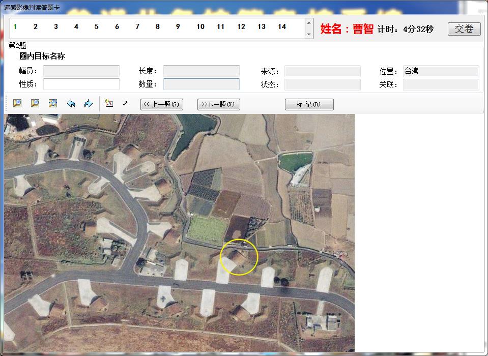 识图用图考核主要以航天、航空、无人机侦察图片为主要判读对象,考核参谋人员战场情况判读能力; -