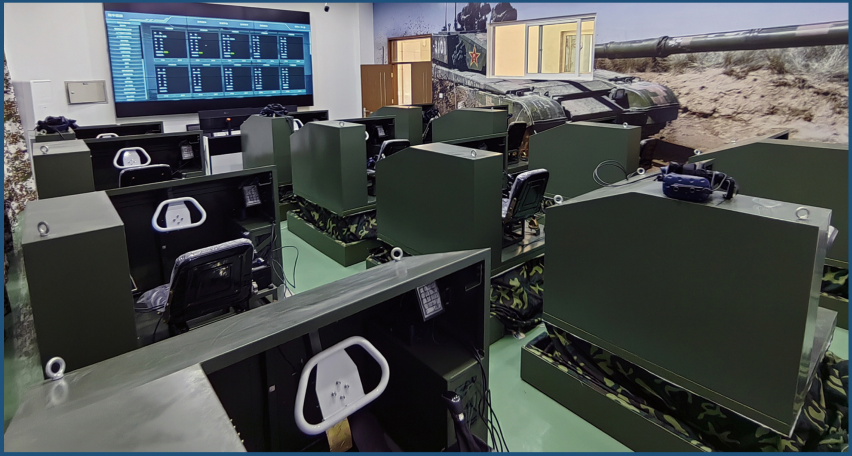 99A式主战坦克AR驾驶模拟训练系统由仿真驾驶舱、振动平台、头戴式AR设备及训练导控台等组成,主要用于供相关部队开展99A式主战坦克驾驶理论学习、驾驶技能训练及驾驶技能分析。系统既支持单台模拟器独立训练,也支持多台模拟器联网统一组训。